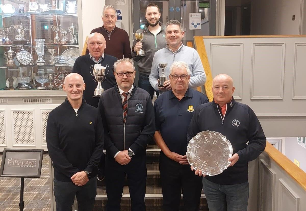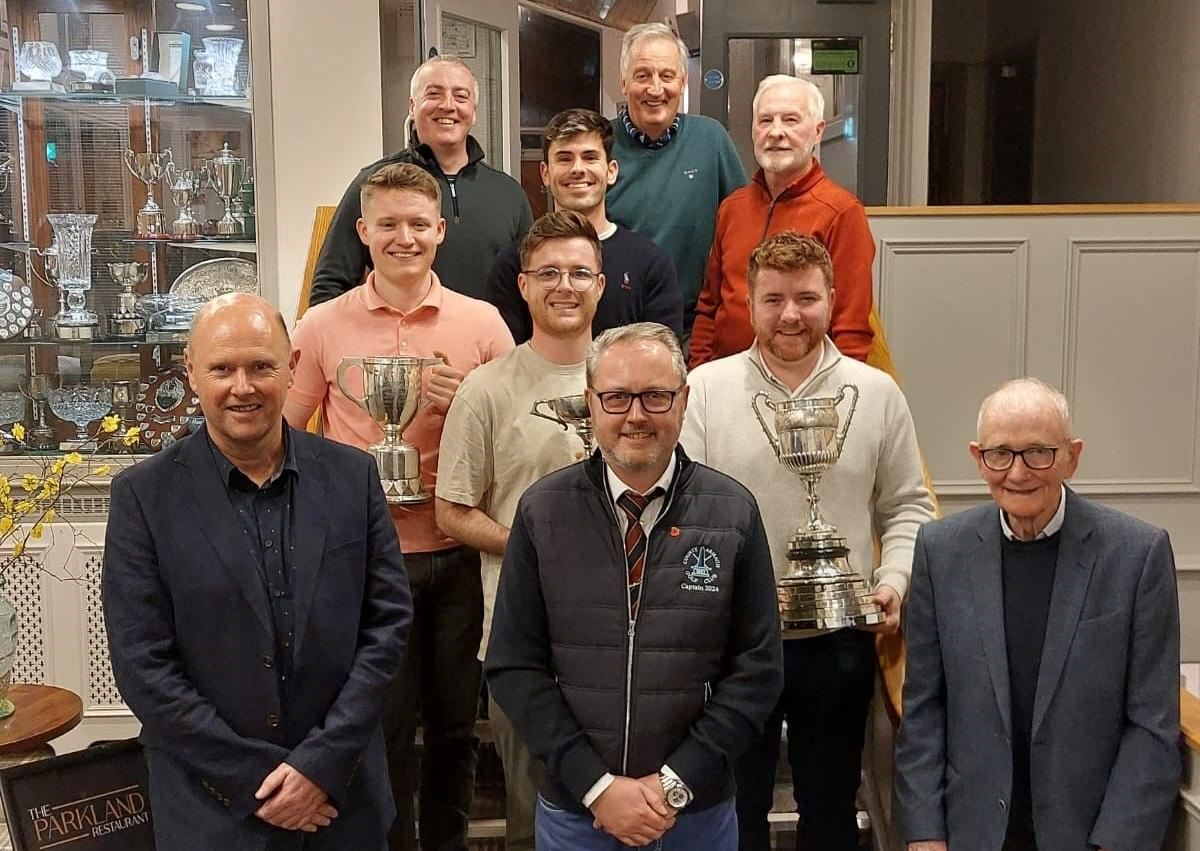 Hirsch Cup Sponsor Fairlawns Mick Murphy, Webster Cup Anthony Conlon and Club Captain Neil Cromwell