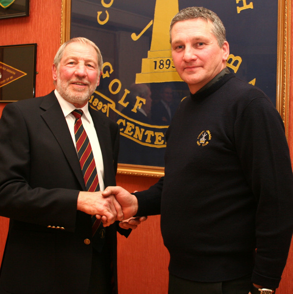 County Armagh Golf Club’s new Captain John Flack congratulates Ciaran Black on winning the Captain’s Inaugural Nine-hole competition played on New year’s Day. Ciaran was one of a number of players who scored 23 stableford points on the day but on countback was declared a very deserving winner.