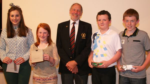 County Armagh Golf Club Captain John Flack is pictured with the Juvenile competition winners on Captain’s Day (from left) Ciarrai Devlin, Anna Jennings, Ronan Mallon and Joe Rooney
