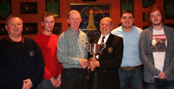 County Armagh Golf Club Captain John Flack presents the Gray Cup to Richard Stewart, winner of the matchplay competition for 13-18 handicaps. Richard defeated Derek McKeever in the final 4&3.