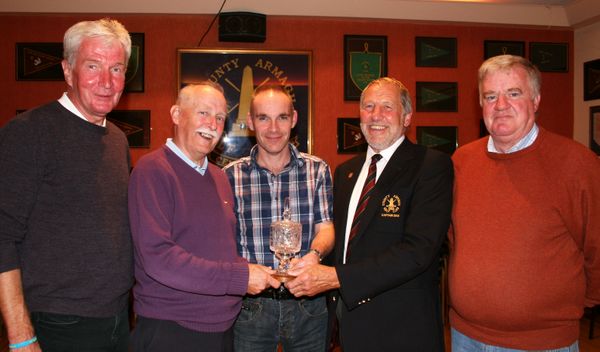 George Gillespie is presented with the Smith Cup by County Armagh Golf Club Captain John Flack. George won the matchplay competition for 0-12 handicaps defeating Niall McGurgan (left) in the semi-final, and Anthony Farrell (right) in the final.
