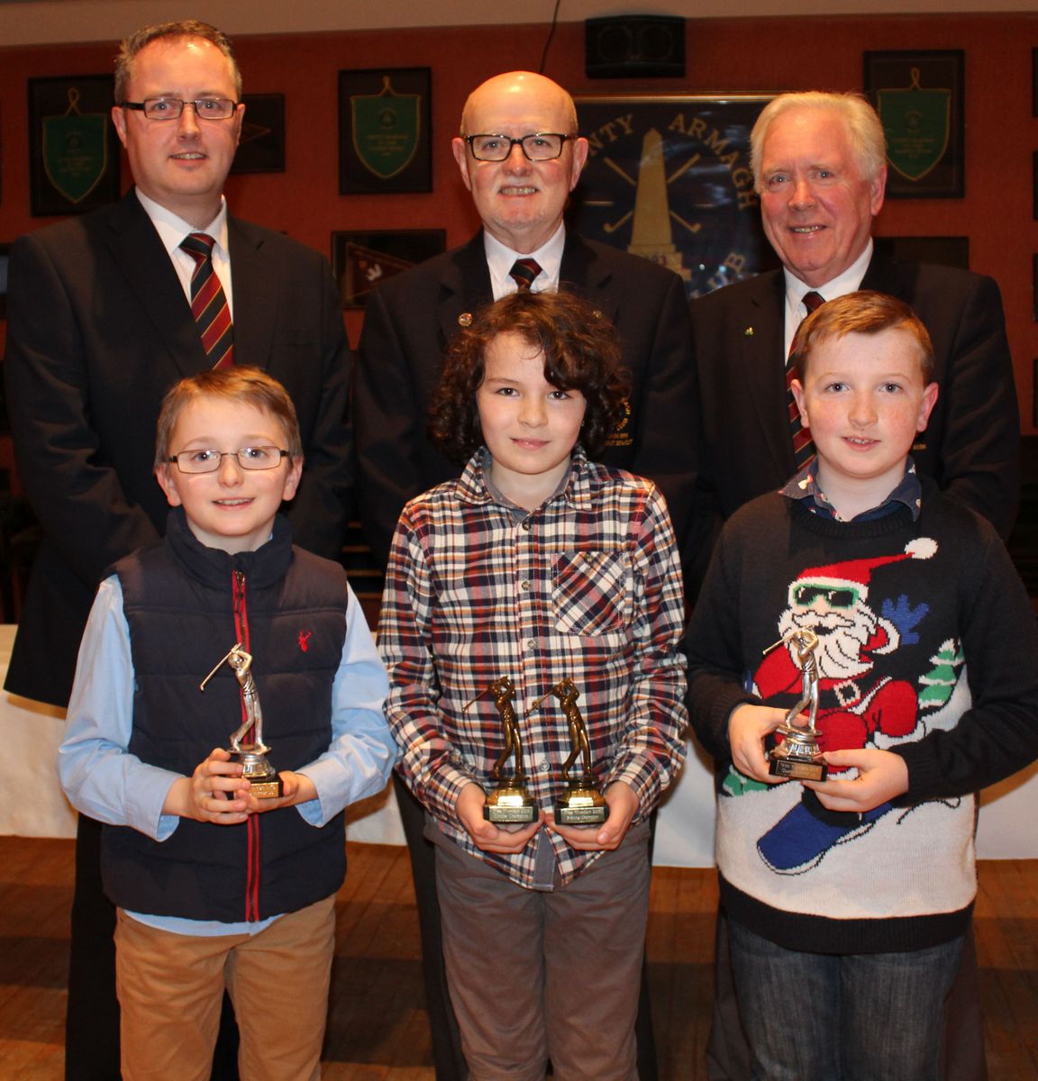 County Armagh Golf Club Wee Wonders winners Thomas McCreesh, Noah McKeown and Ryan Gill are pictured with (from left) Neil Cromwell, Juvenile Convenor, Club President Walter Neville and Club Captain Martin Oliver.