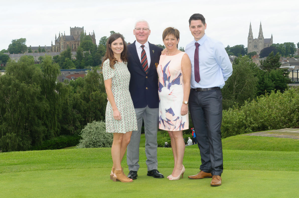 County Armagh Golf Club Captain Richard Stewart with wife Eileen, son Darren and daughter Nicola on the 18th green at the start of Captain's Day.