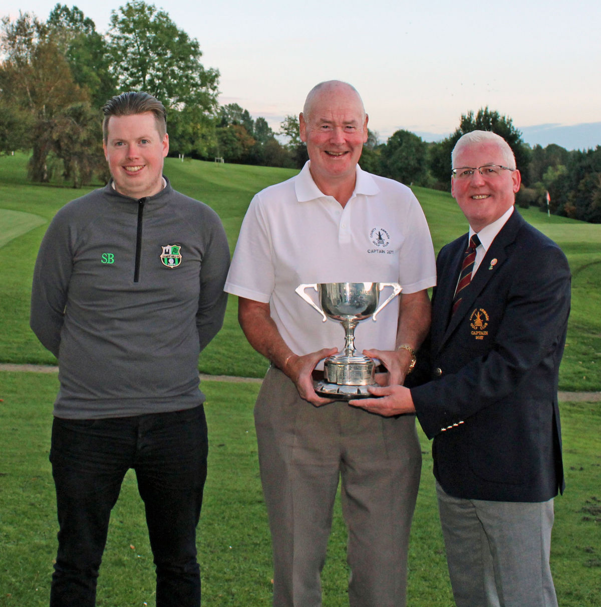 Tom Calvert, winner of County Armagh Golf Club's Smith Cup matchplay competition, is presented with the trophy by Club Captain, Richard Stewart. Also pictured is beaten finalist, Shea Brady.