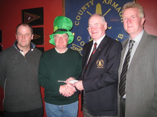 County Armagh Golf Club Captain Tom Calvert presents George Gillespie with his prize after winning the St Patrick's Day Stableford Competition. Included in the picture are Ian Millar and John Mawhinney who also collected prizes on the day.