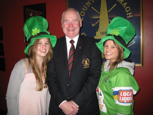 Australian students Siobhan Hynes and Jamie Williams, nieces of winner George Gillespie and enjoying a gap year out from Down Under, were among the revellers to enjoy the day's entertainment and even joined Club Captain Tom Calvert in a toast to Ireland's Patron Saint, albeit with a lager!