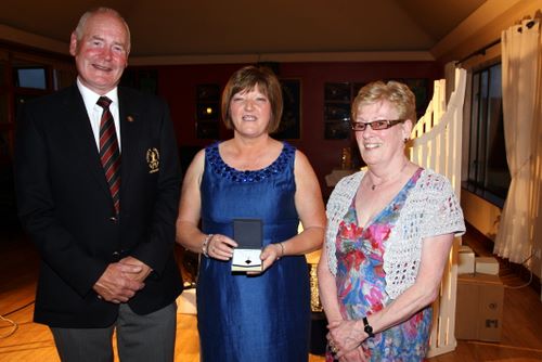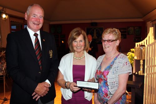 Runner up in the Ladies competition on Captain's Day was Rea Haughey who is pictured receiving her prize from Captain Tom Calvert and wife Renee