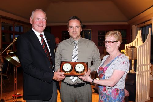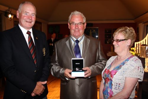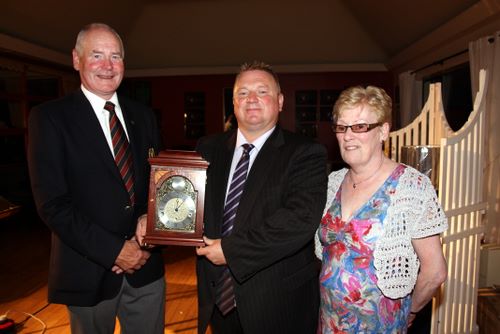 In front of a packed clubhouse on Saturday evening, Captain Tom Calvert and wife Renee presented Nigel with a magnificent miniature timepiece which no doubt today sits proudly on the city man's mantlepiece, a reminder for many years to come of the day he won Captain's Day at County Armagh .