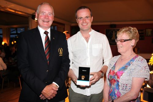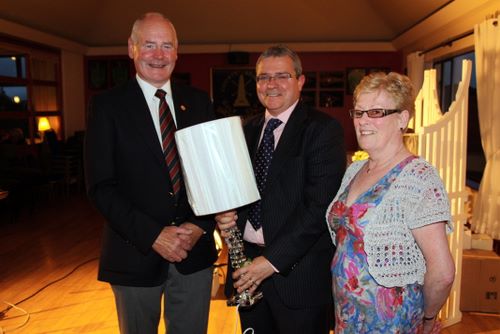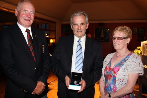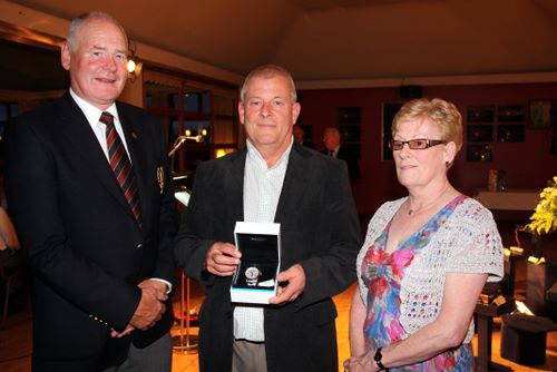 Captain's Day competition runner up was Ivan Brown, collecting his prize from Captain Tom Calvert and wife Renee