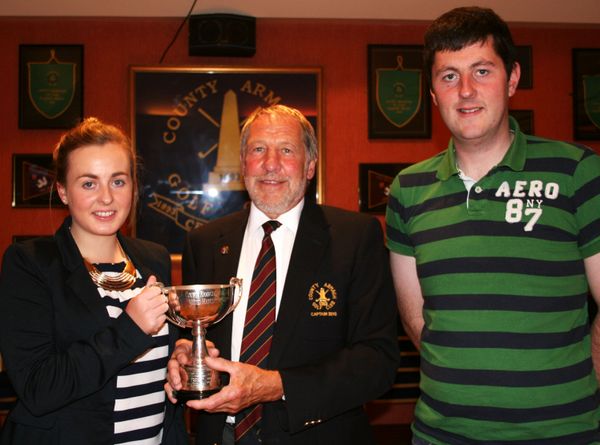 County Armagh Golf Club Captain John Flack presents the Mixed Matchplay Cup to Aideen Canavan and Jarleth McReynolds. The young pairing defeated Desi and Helen McLaughlin in a thrilling final of the annual matchplay competition.
