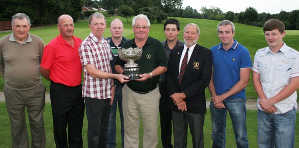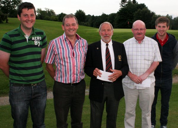 Pat Brannigan is presented with his prize by Ian Dawson from Ian Dawson & Co. Solictors who sponsored the competition. Included also are County Armagh Golf Club Captain John Flack and runners up (from left) Declan McReynolds, Colin Gamble and Roy Turner .