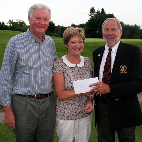Open Mixed Greensomes winners, Barry and Vera Ellingham are presented with their prize by County Armagh Golf Club Captain John Flack.