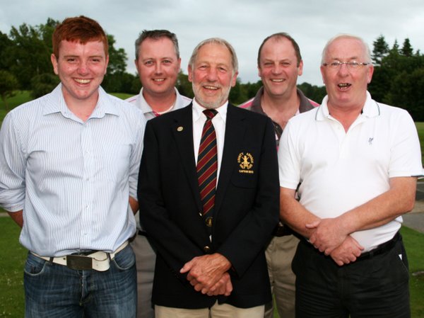 County Armagh Golf Club Captain John Flack is pictured with prize winners in the Noel Conn and Company, Armagh, sponsored stableford competition (from left), Lee Stewart, Neil Cromwell, Ian Millar and Damien Murray