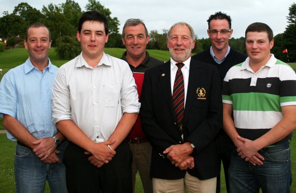 County Armagh Golf Club Captain John Flack is pictured with prize winners in the Cross Group sponsored Open Stableford Competition (from left) Johnny Brown, John Maguire, Art McCrory , Gary McCourt and James Johnston