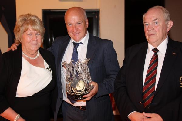 The Runner-up on Captain's Day at County Armagh Golf Club, Marty Daly, is presented with his prize by Club Captain Brendan Smith and wife Bernie.
