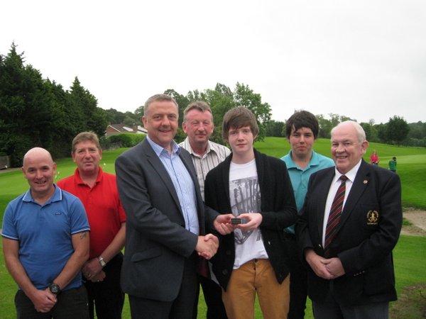 Juvenile player Niall Brady, winner of the June Medal (nett 63) receiving his prize from sponsor Trevor Lockhart of Fane Valley Co-Operative together with other prizewinners John Lavery, Winston Gordon, Declan McReynolds, John Maguire and right, Club Capt. Brendan Smyth.