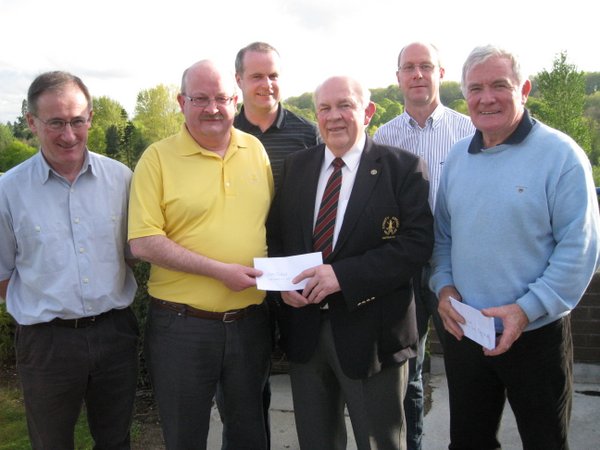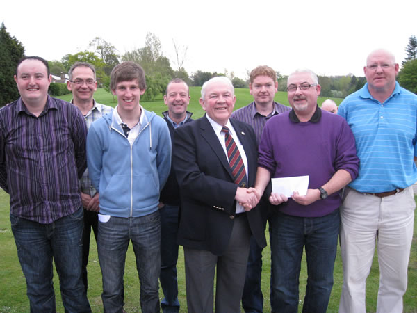 4-BALL CLASSIC WINNERS: Neil Linton, Captain of the 4-Ball Classic winning team collects his prize from County Armagh Golf Club Captain Brendan Smyth. Looking on are team members Brian Loney and Lee Stewart.