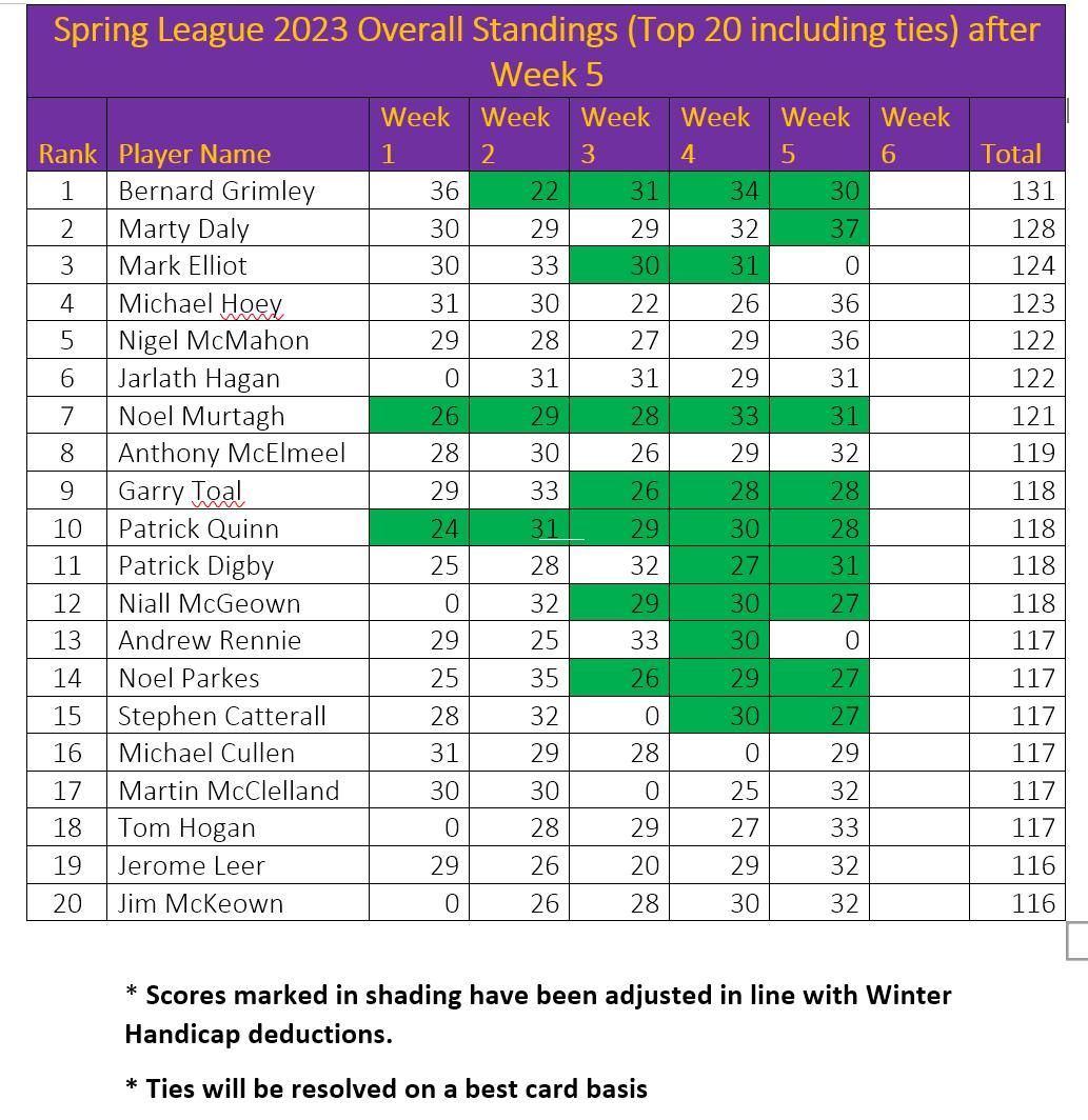 2nd Noel Murtagh 33pts (Back 7) (£10.00)