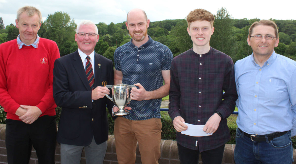 County Armagh Golf Club Captain Richard Stewart presents the Bankers' Cup to winner Paul Pender in the company of category prize winners Cormac O'Hare, Lee Campbell and Ciaran McCreesh.