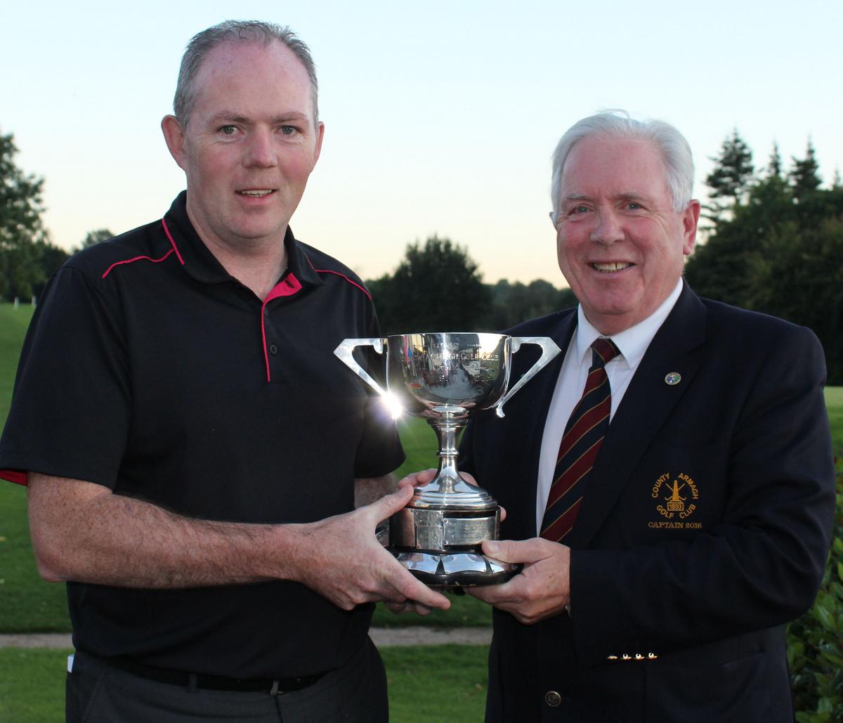 2016 Smith Cup champion, Paul Corvan, receives the trophy from the then Captain, Marty Oliver.