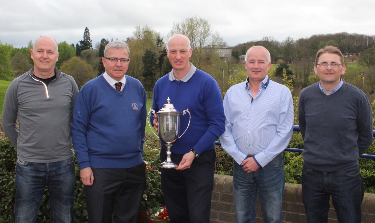 Michael Calvert receives the CP McNabb trophy from Vice Captain, Colm Shannon. Also pictured (L-R) are prize winners David Grimley, Stephen Catterall and Ciaran McCreesh.