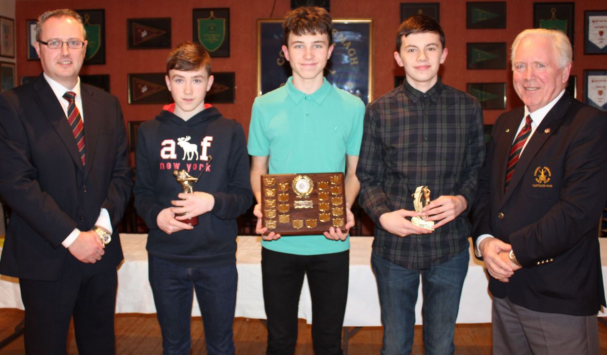 County Armagh Golf Club Captain Martin Oliver (right) and Juvenile Convenor Neil Cromwell are pictured with Juvenile July stroke winner Jamie McKenna, Professional Shield winner Niall McCormack and September stroke winner Conor Brady.