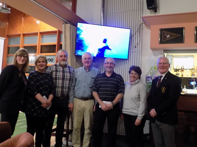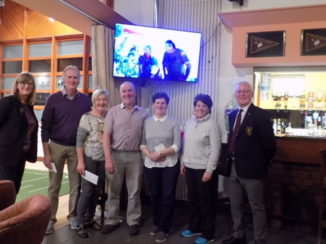 A total of 26 teams entered this popular event competing in two previous qualifying rounds. Ms Paula McCrory as master of ceremonies ensured the smooth running of proceedings +on the three nights of the competition. The Ladies Committee provided the supper each evening along with raffle prizes which were augmented by the Bar Staff. The caretaker Mr Paul Doyle with some volunteers ensured the matts were ready for the competitions and safely stored away each night.