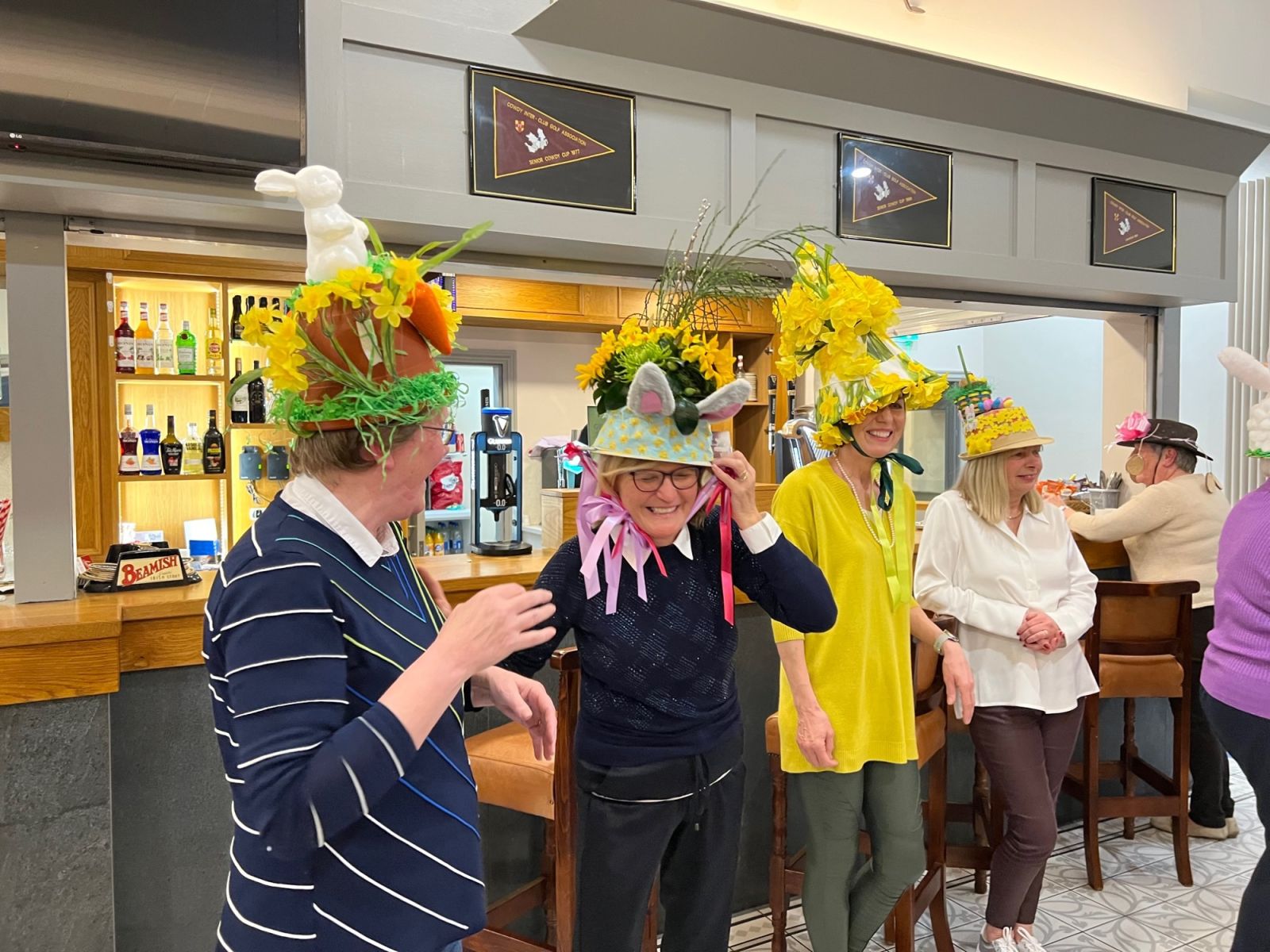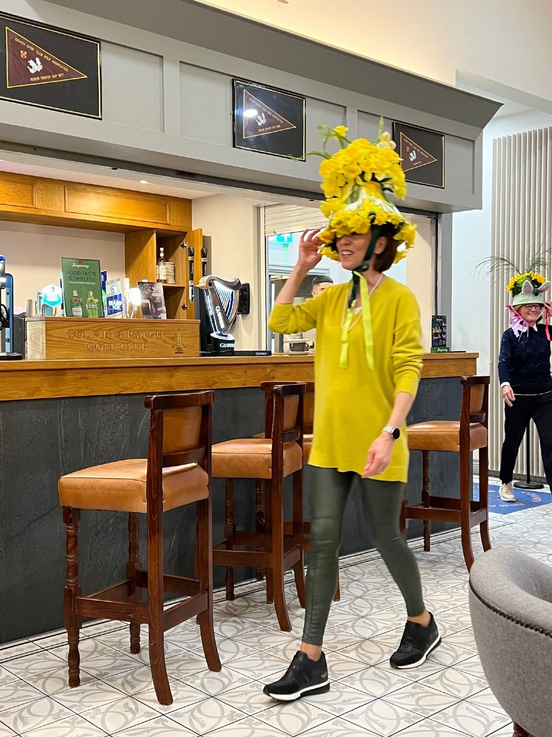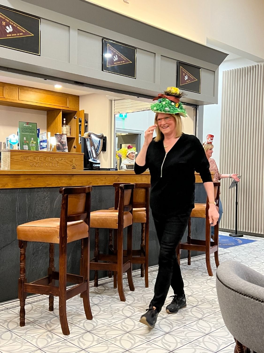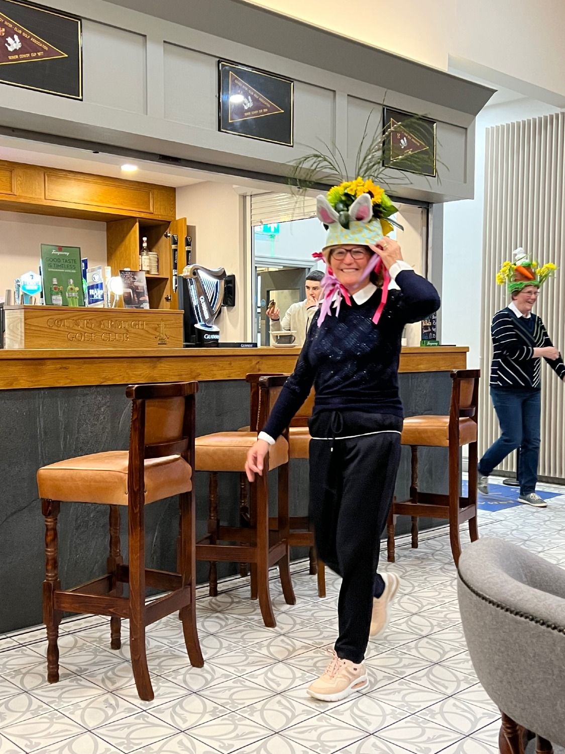 Captain Gerry Kelly had a very difficult task judging the headpieces, with first prize going to Lady Vice Captain Ellen Brady, who had crafted an combined Easter and golf themed creation.