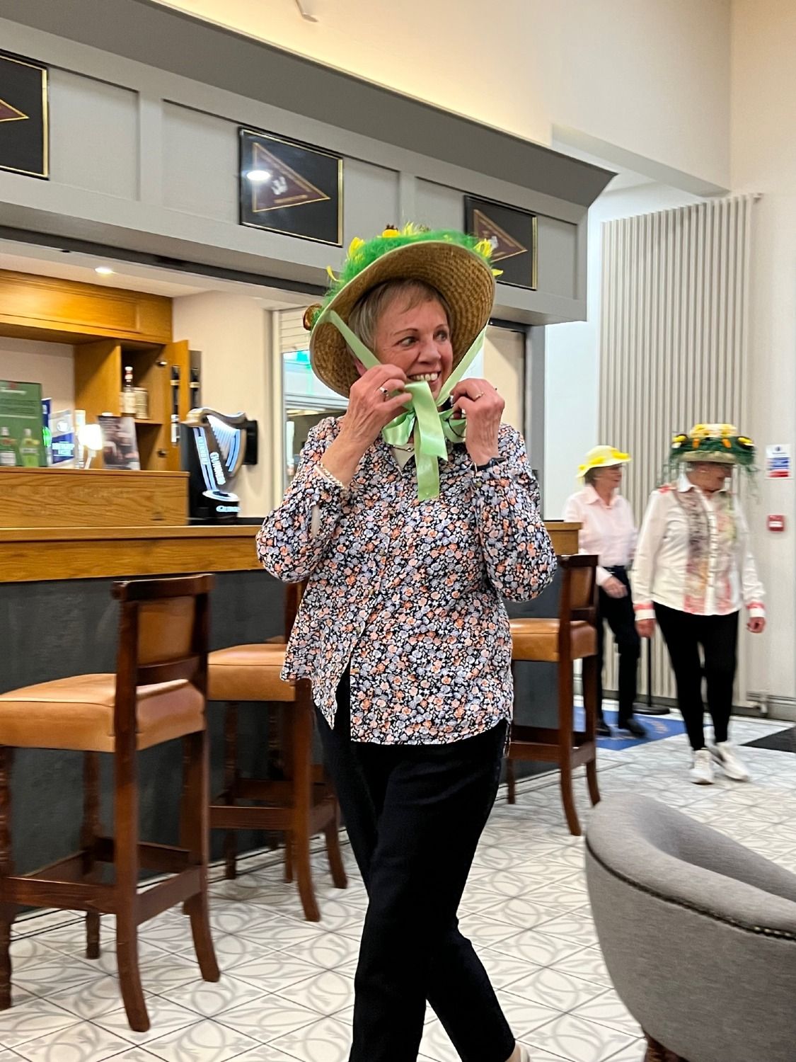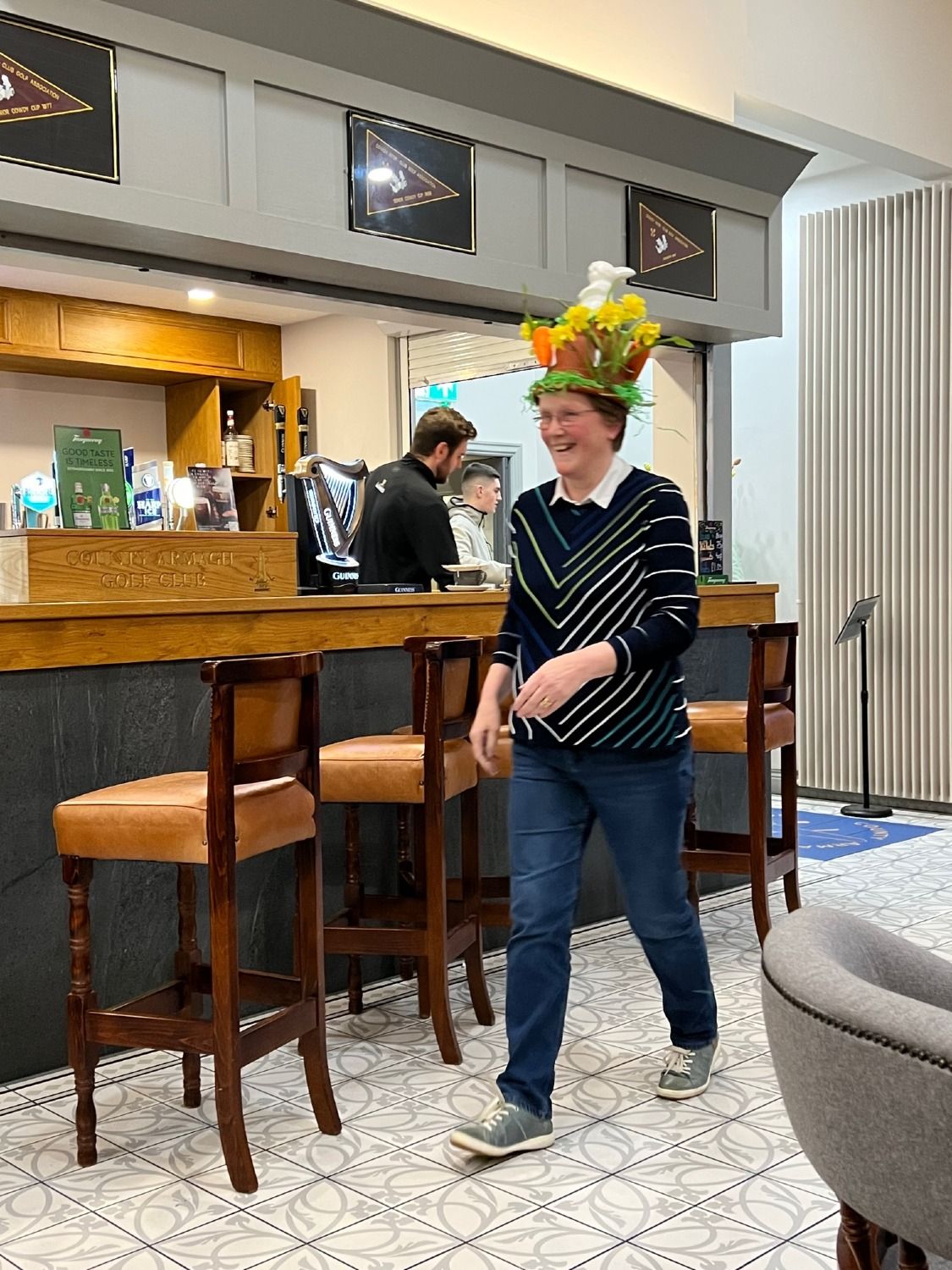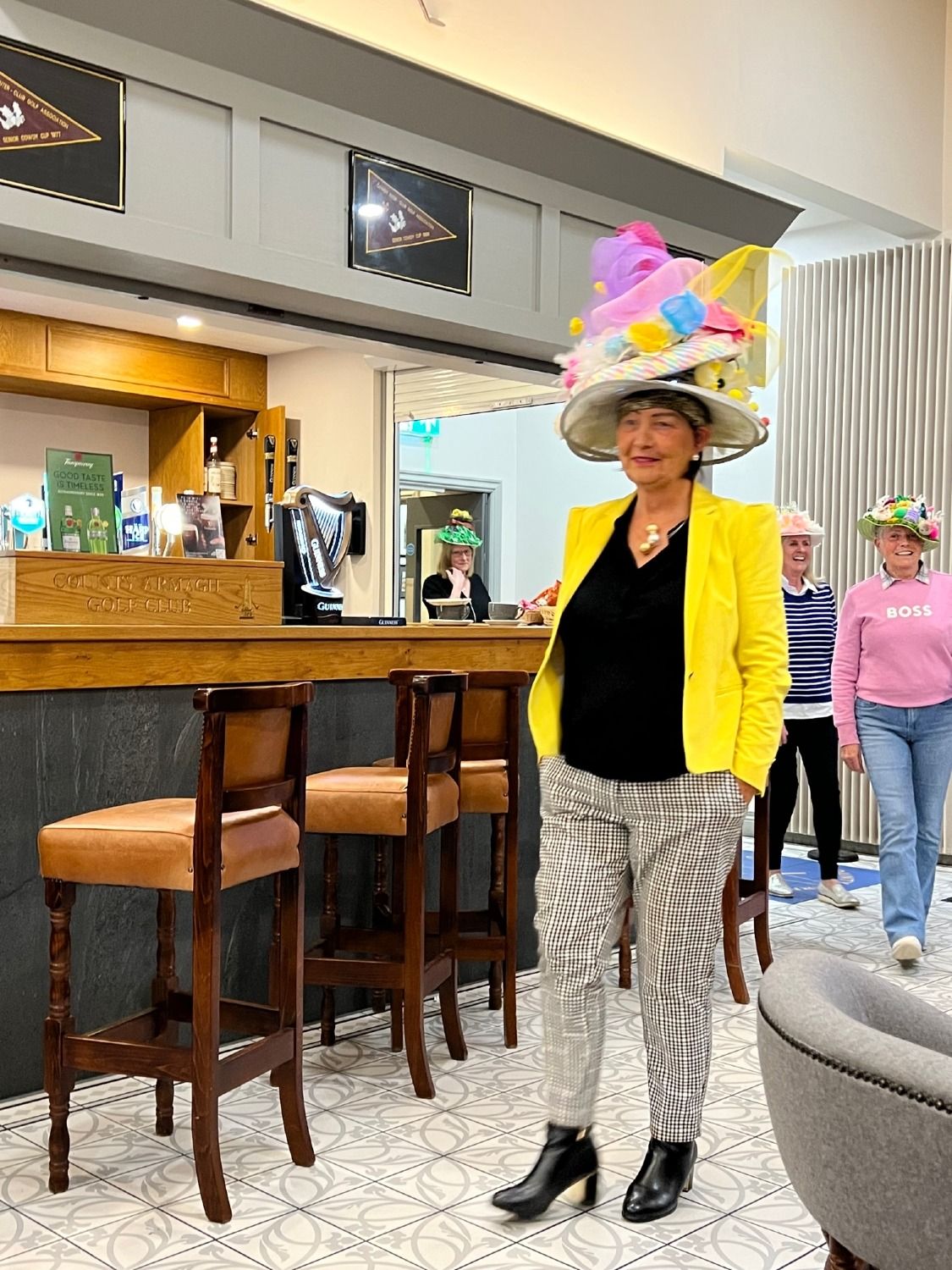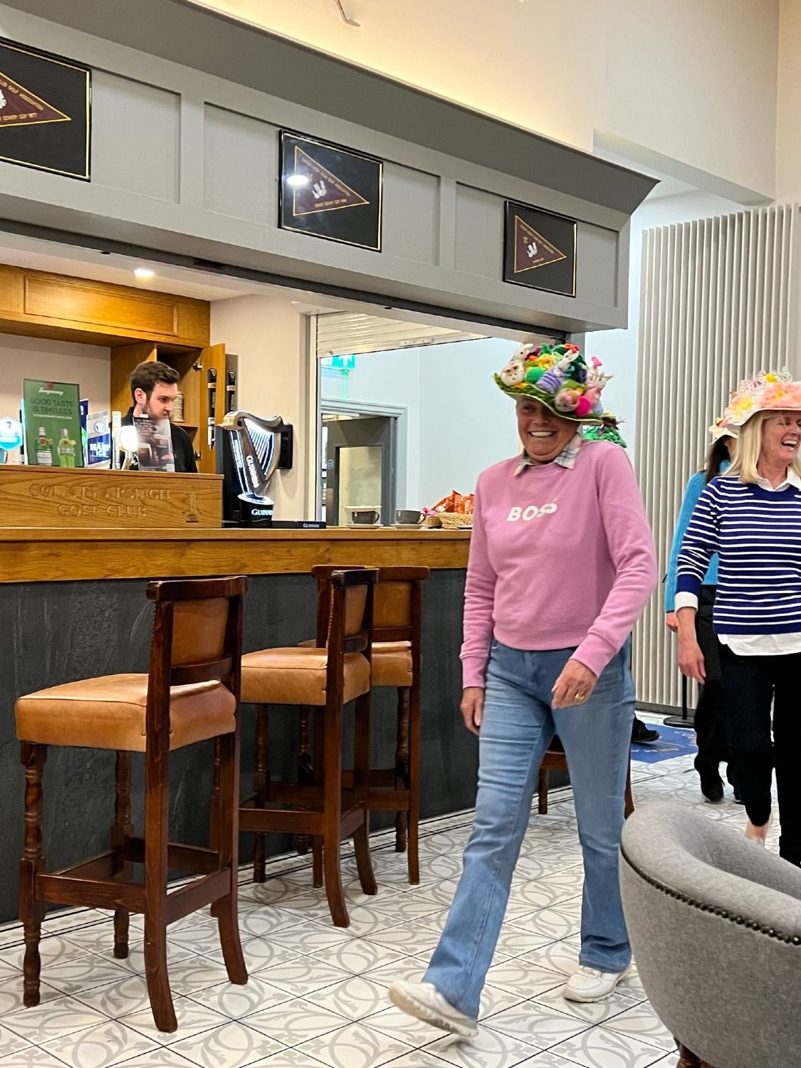 Captain Gerry Kelly had a very difficult task judging the headpieces, with first prize going to Lady Vice Captain Ellen Brady, who had crafted an combined Easter and golf themed creation.