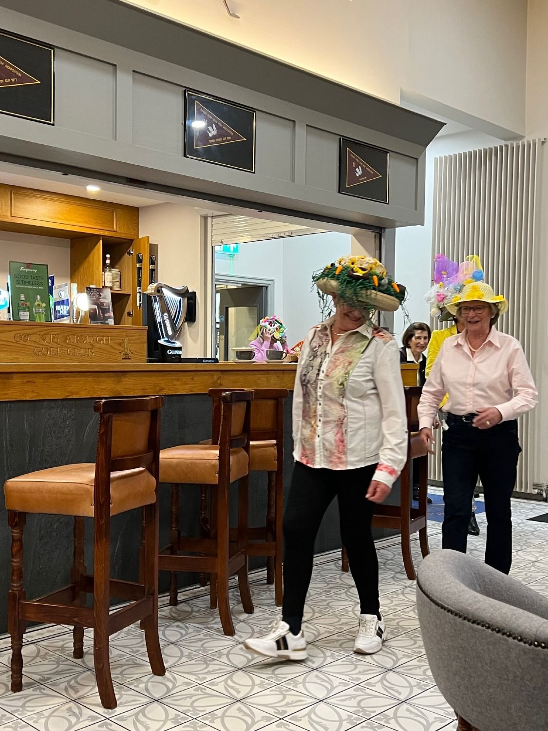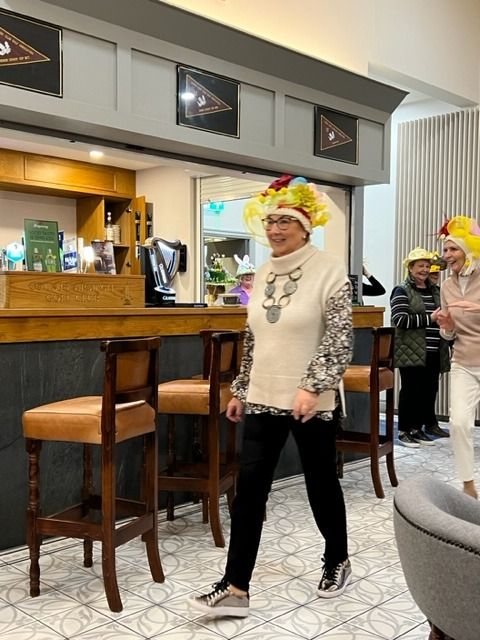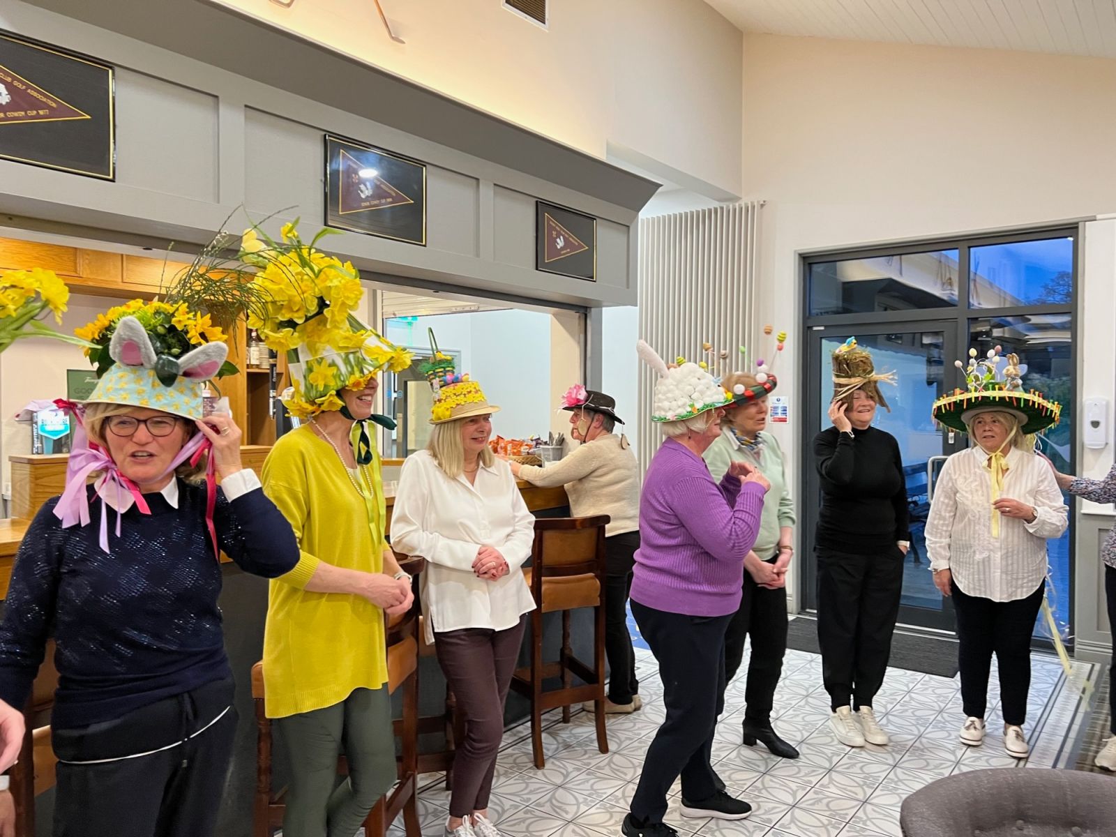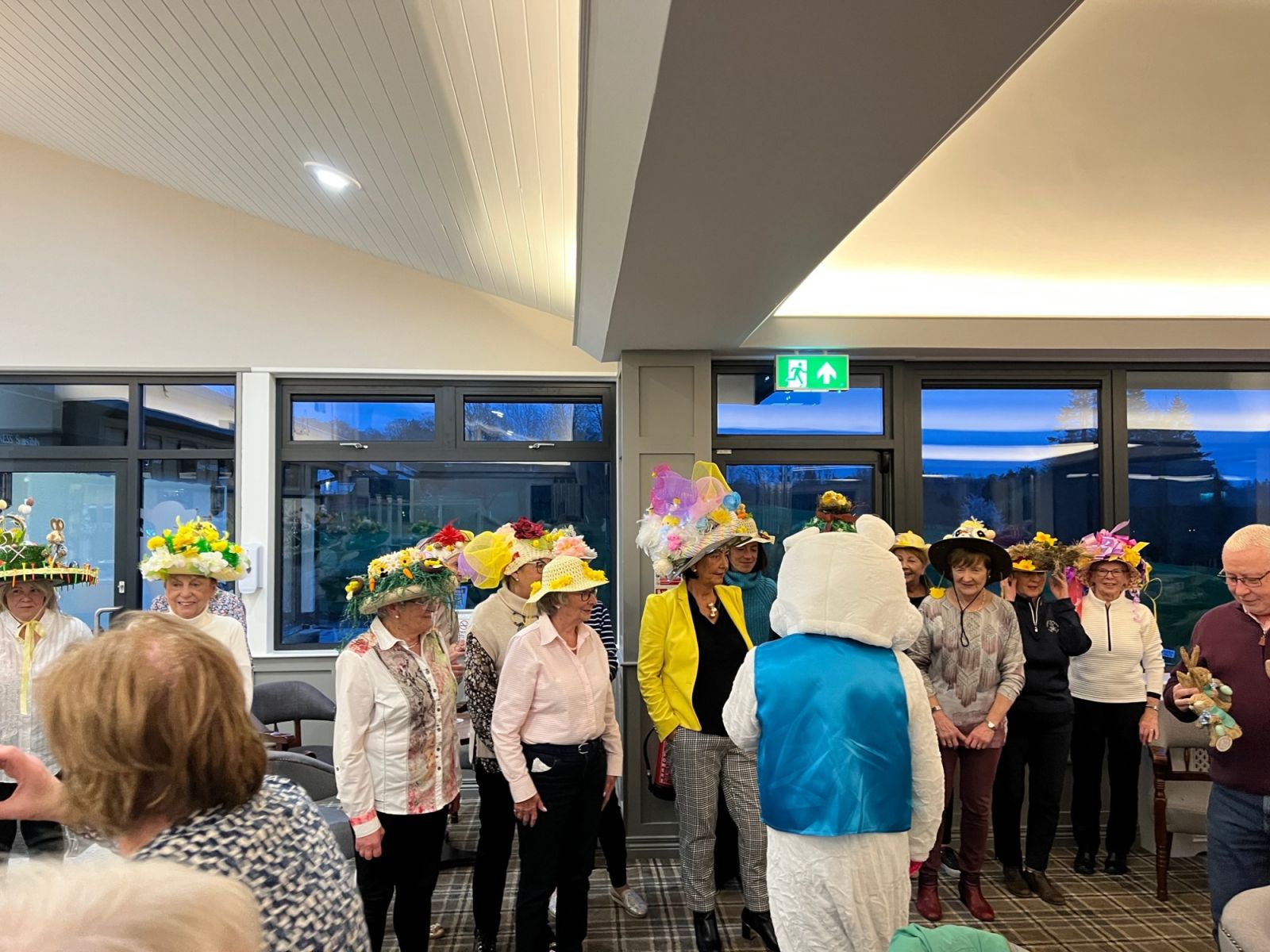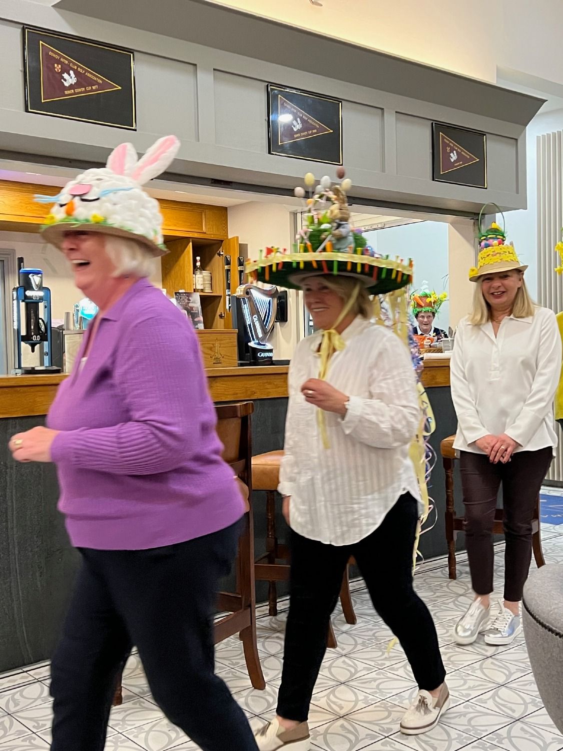 Twenty-four ladies had tapped into their creative side and proudly donned their unique, handmade bonnet for the parade through the clubhouse, led by none other than the Easter Bunny.