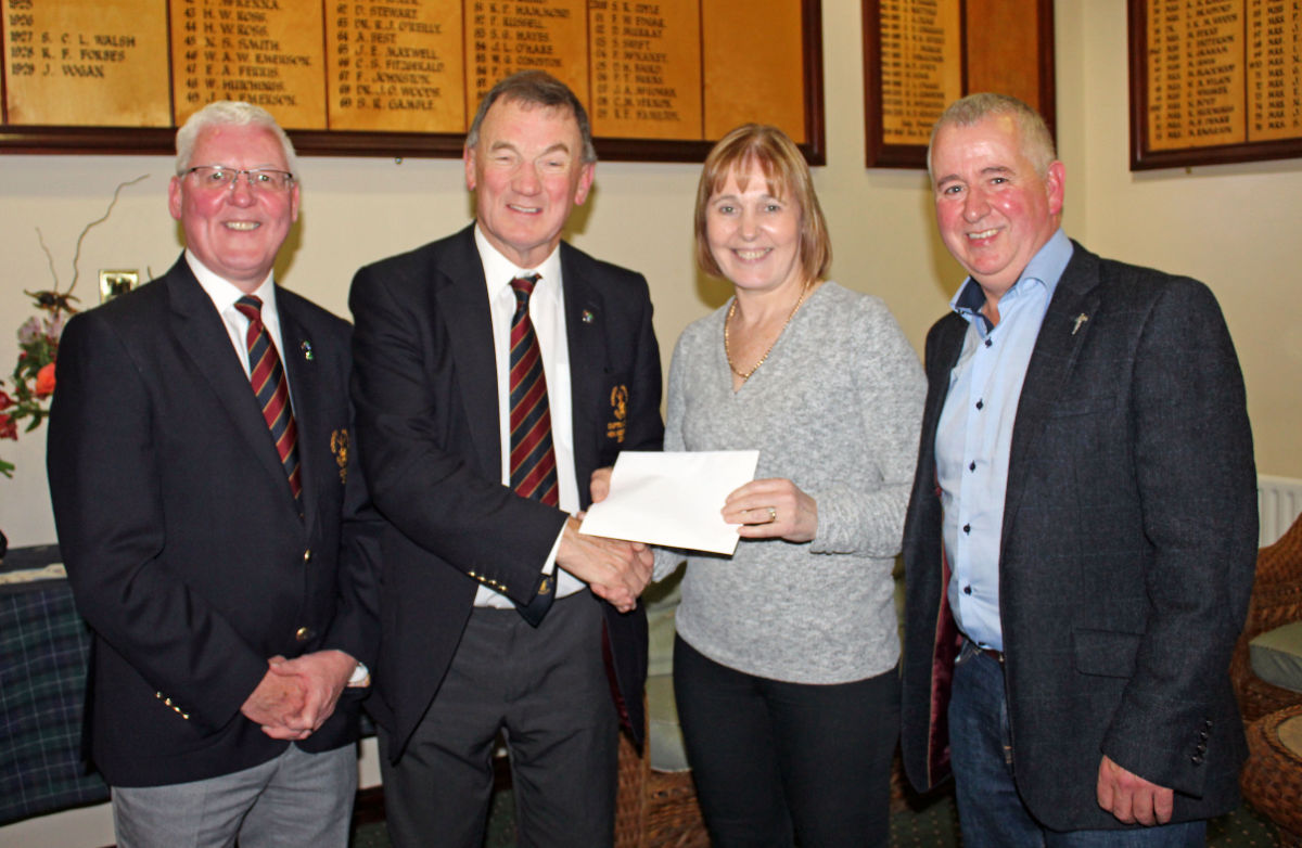 County Armagh Golf Club Captain Richard Stewart presents a cheque for £700, proceeds of his charity collection on Captain's Day earlier this year, to Daphne Kilpatrick from Macmillan Cancer Support.