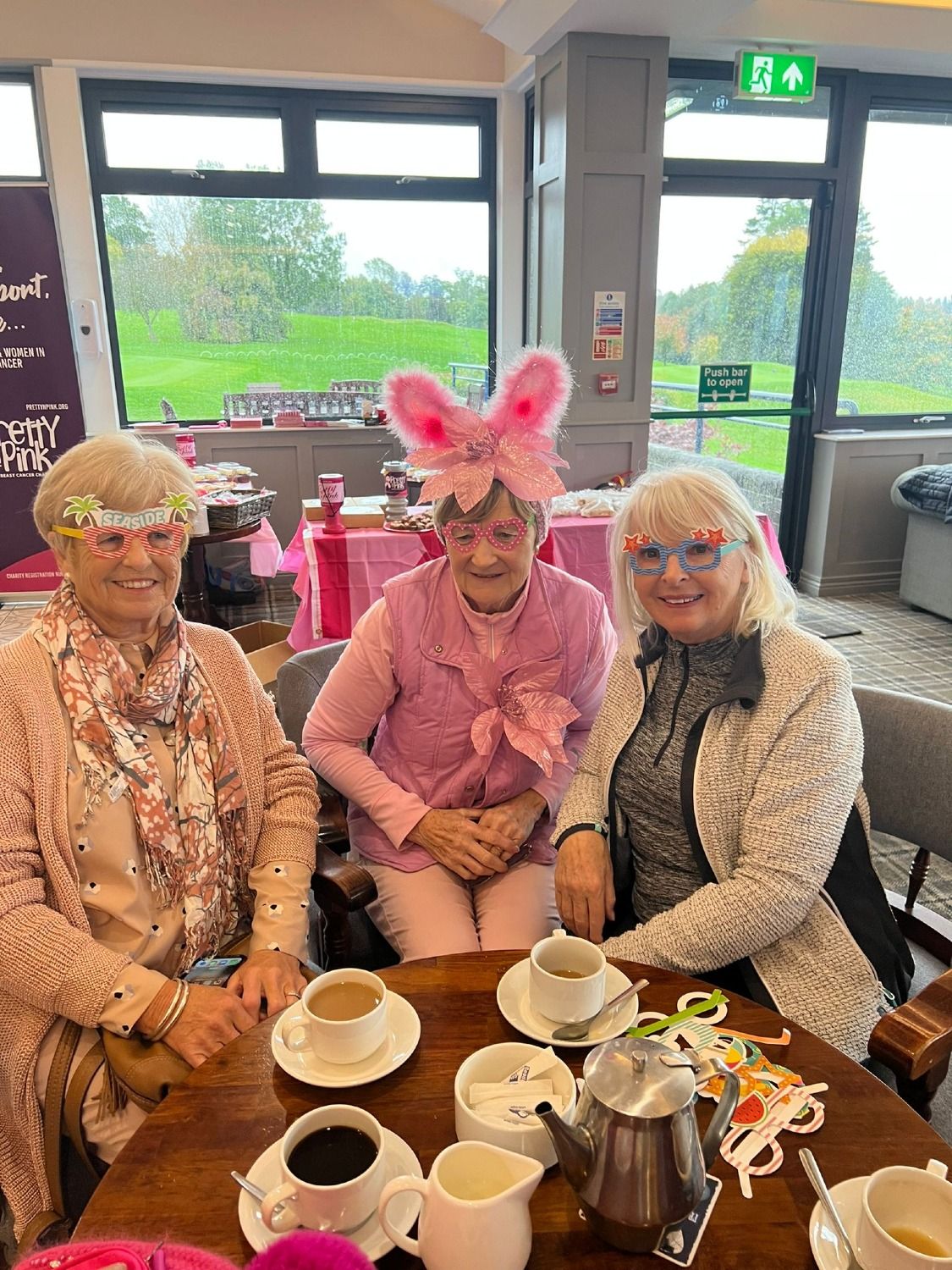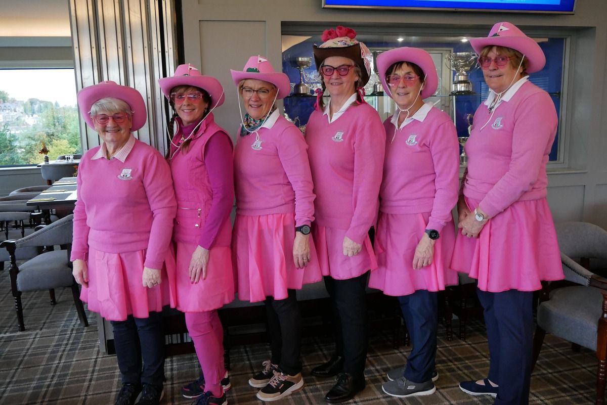 As October is breast cancer awareness month participants were requested to wear pink to support the annual campaign. Unfortunately, it was wet for most if not all and the winter maintenance task of sanding the course had recently been carried out making playing conditions difficult and this was reflected in the scores.