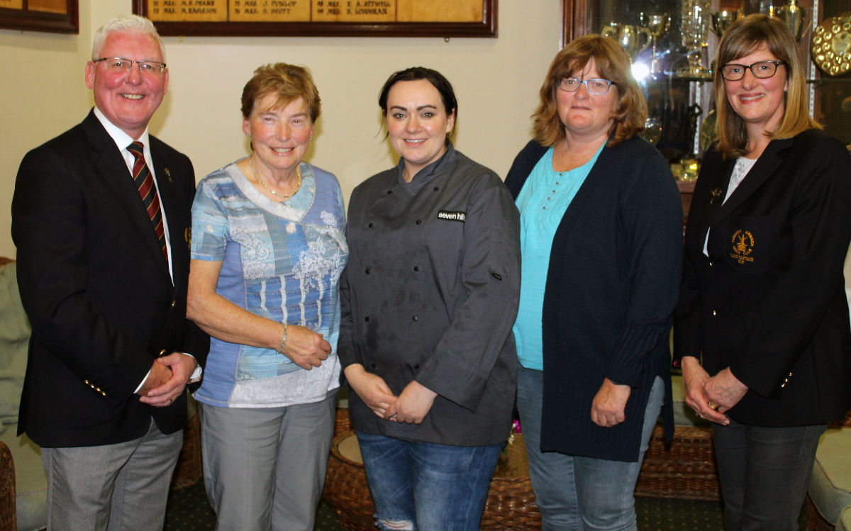Shauna Finn (centre), representing the @Seven Hills Restaurant, is pictured with Ladies Winners at the County Armagh Golf Club Sponsors Day, Caitlin McKinney and Paula McCrory. Included also are County Armagh Golf Club Captain Richard Stewart and Lady Captain Gail Steed.