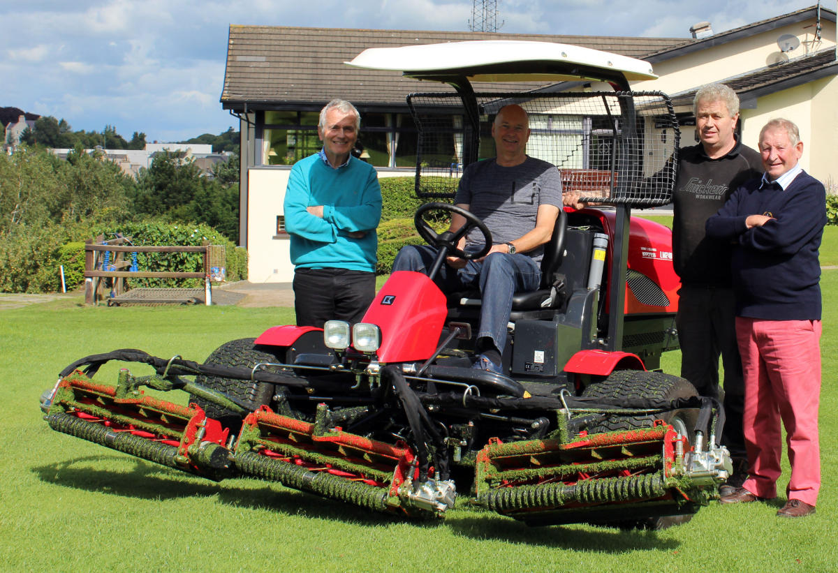As part of the continuing improvements of the course at County Armagh Golf Club, the Greens staff took delivery of a new Baroness Fairway mower. Checking out the new machine with Greens Convenor Davy Baird (seated) and Head Greenkeeper Ian McCarragher, are Pat McAleavey, Club Treasurer and Dougie Somerville, Trustee.