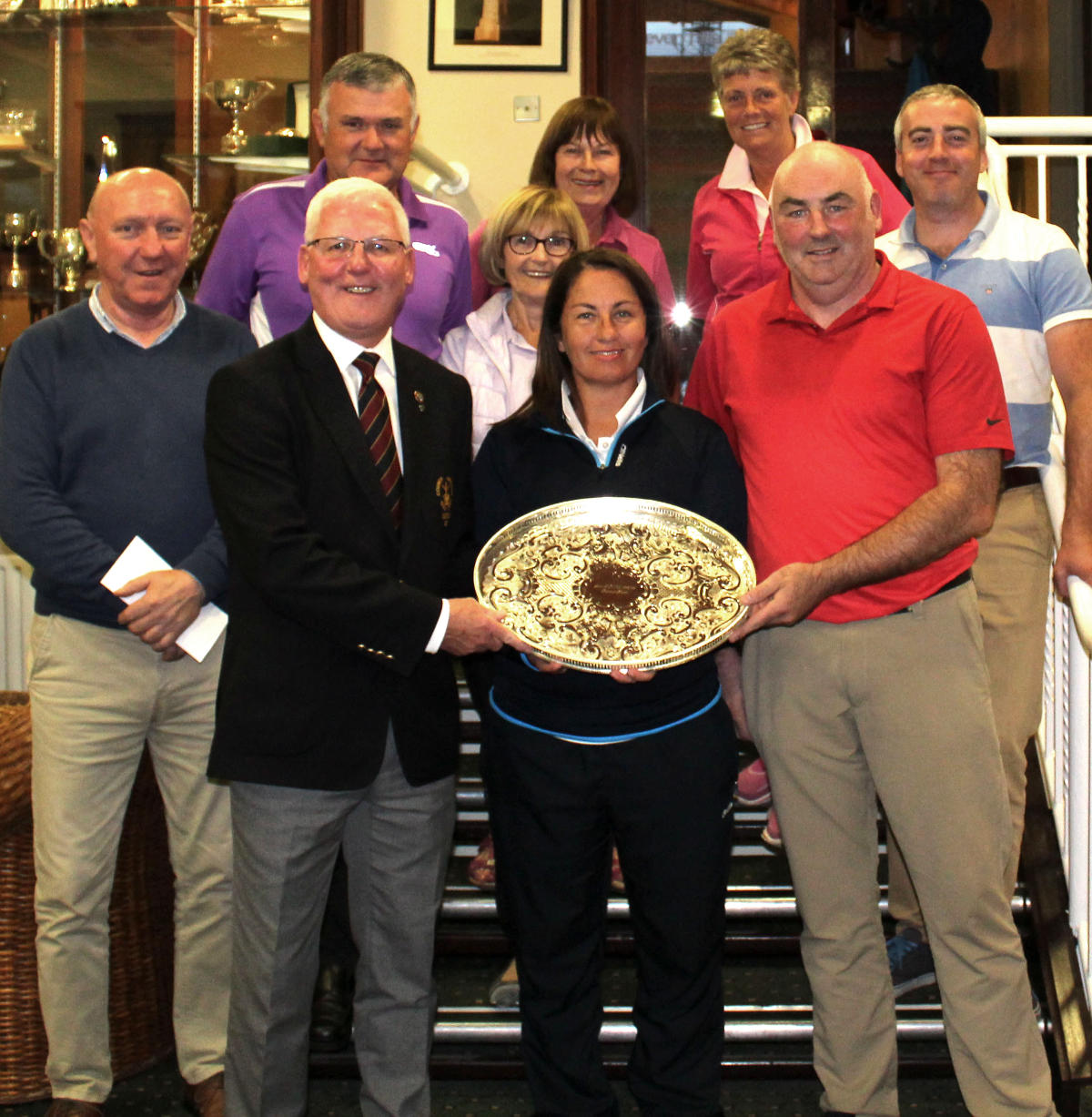 County Armagh Golf Club Captain Richard Stewart presents the John O'Neill Memorial Salver to Mixed Greensomes competition winners Mary Black and Jerome Leer. Included also are runners up Anthony Conlon and Cathleen Mone, Sean Dougan and Ann McDonald and Hilary Johnston and Stewart Stevenson, Gross Prizewinners.