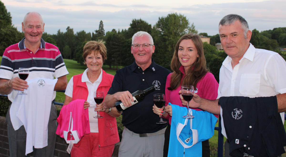 Club Captain Richard Stewart celebrates with winners of the ‘9 & Wine' competition held on Friday 16 June, namely Tom Calvert, Vera Ellingham, Alexandra Mawhinney and Sean Dougan.