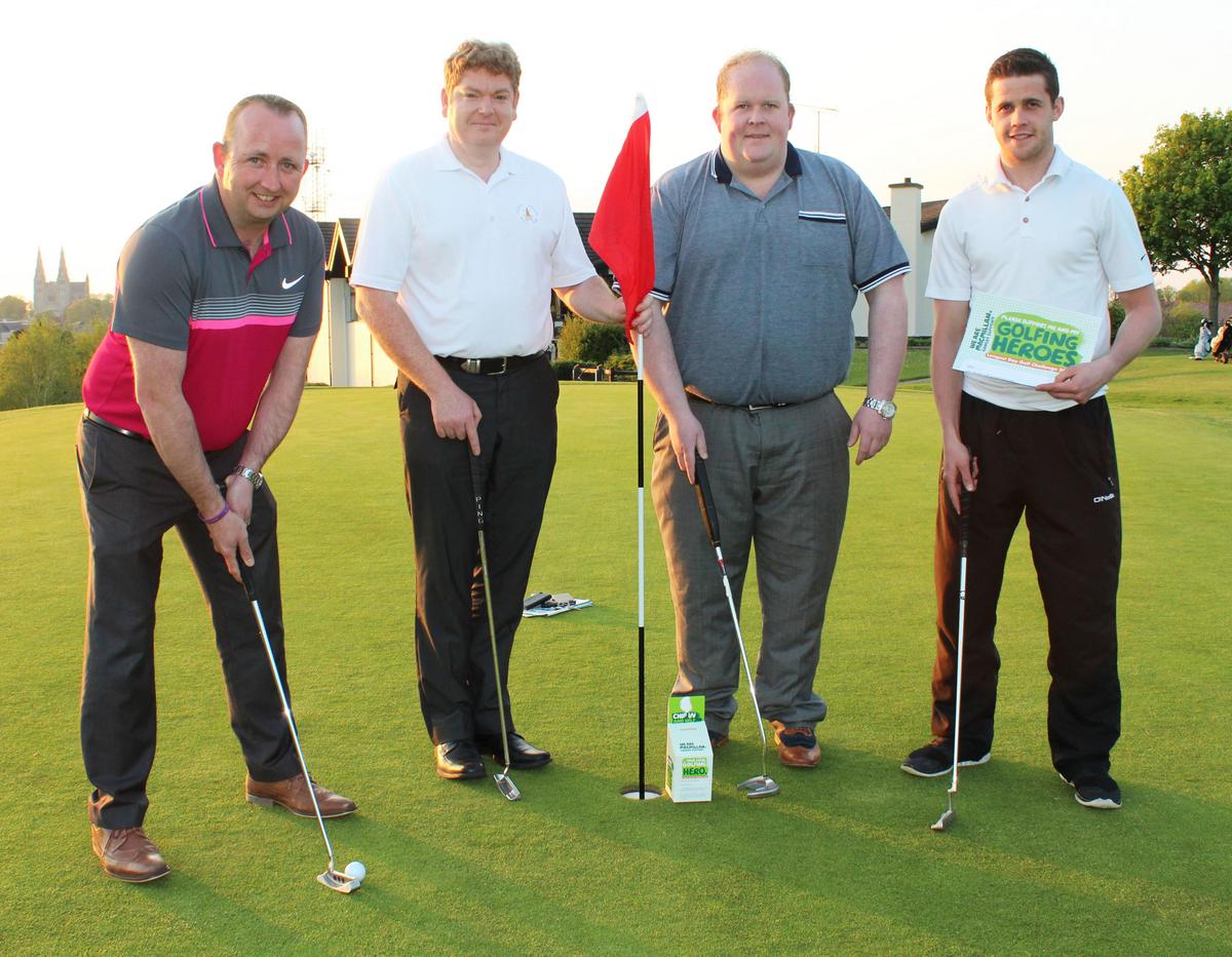 Golfing Heroes Marty Daly, Patrick Brannigan, Damien Smyth and Declan Quinn will play the Longest Day Golf Challenge in aid of Macmillan Cancer Support, at County Armagh Golf Club on June 23rd.
