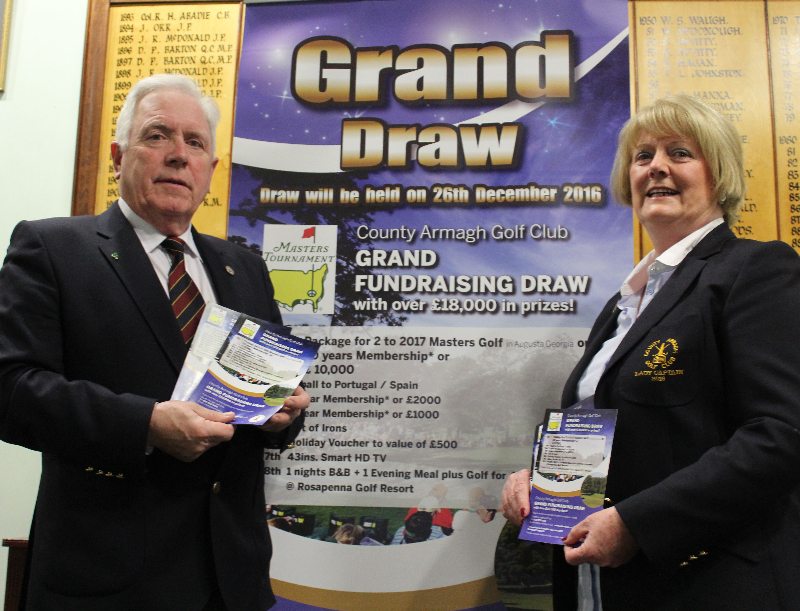 GRAND DRAW LAUNCH: County Armagh Golf Club Captain Martin Oliver and Lady Captain Una Cullinane are pictured at the launch of a Grand Fund-raising Draw with the top prize of an all-expenses paid trip for two to the 2017 Masters Golf Tournament in Augusta, Georgia