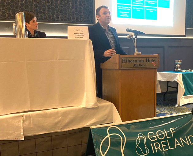 Golf Ireland Director of Championships Mark Wherly and Regional Manager Jen Hickey updating delegates on the key changes to Championships and Interclub events at the Ulster Branch AGM attended by County Armagh Golf Club delegates Club Captain-Gerry Kelly Lady Captain-Lilian McMullan & Ladies Secretary- Gail Steed.