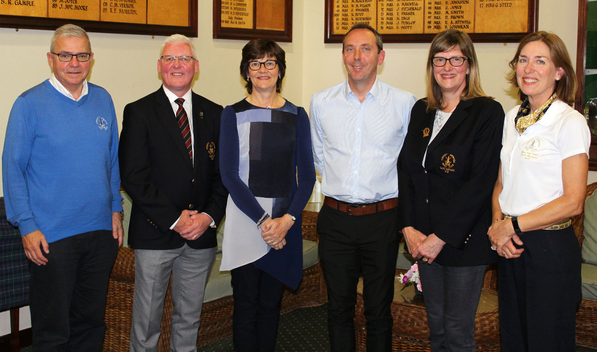 Retiring Professional at County Armagh Golf Club, Alan Rankin and his wife Jane are pictured with Club Captain Richard Stewart, Lady Captain Gail Steed, Vice-Captain Colm Shannon and Lady Vice-Captain Elizabeth Mawhinney.