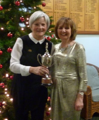 Mrs. Margaret Marjoram (Lady Captain 2015) presents Mrs Fol McCall (left) with the Golfer of the Year Trophy at a recent prize giving event at County Armagh Golf Club.