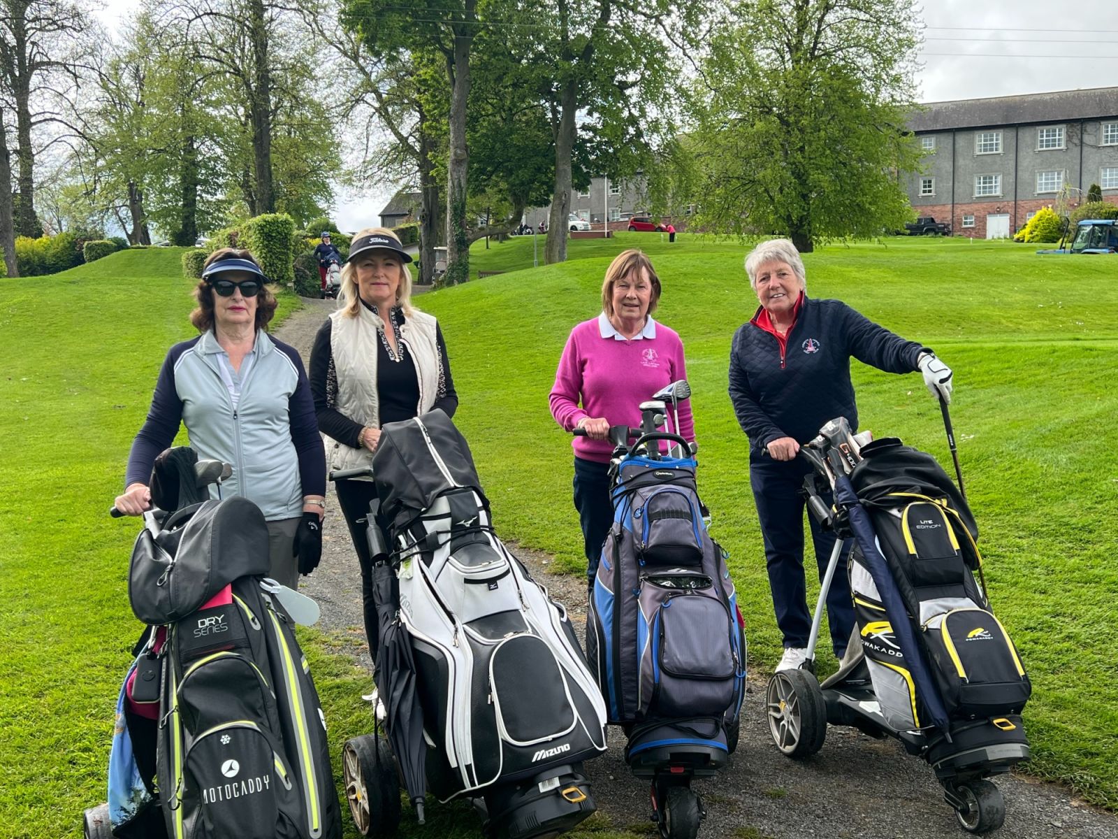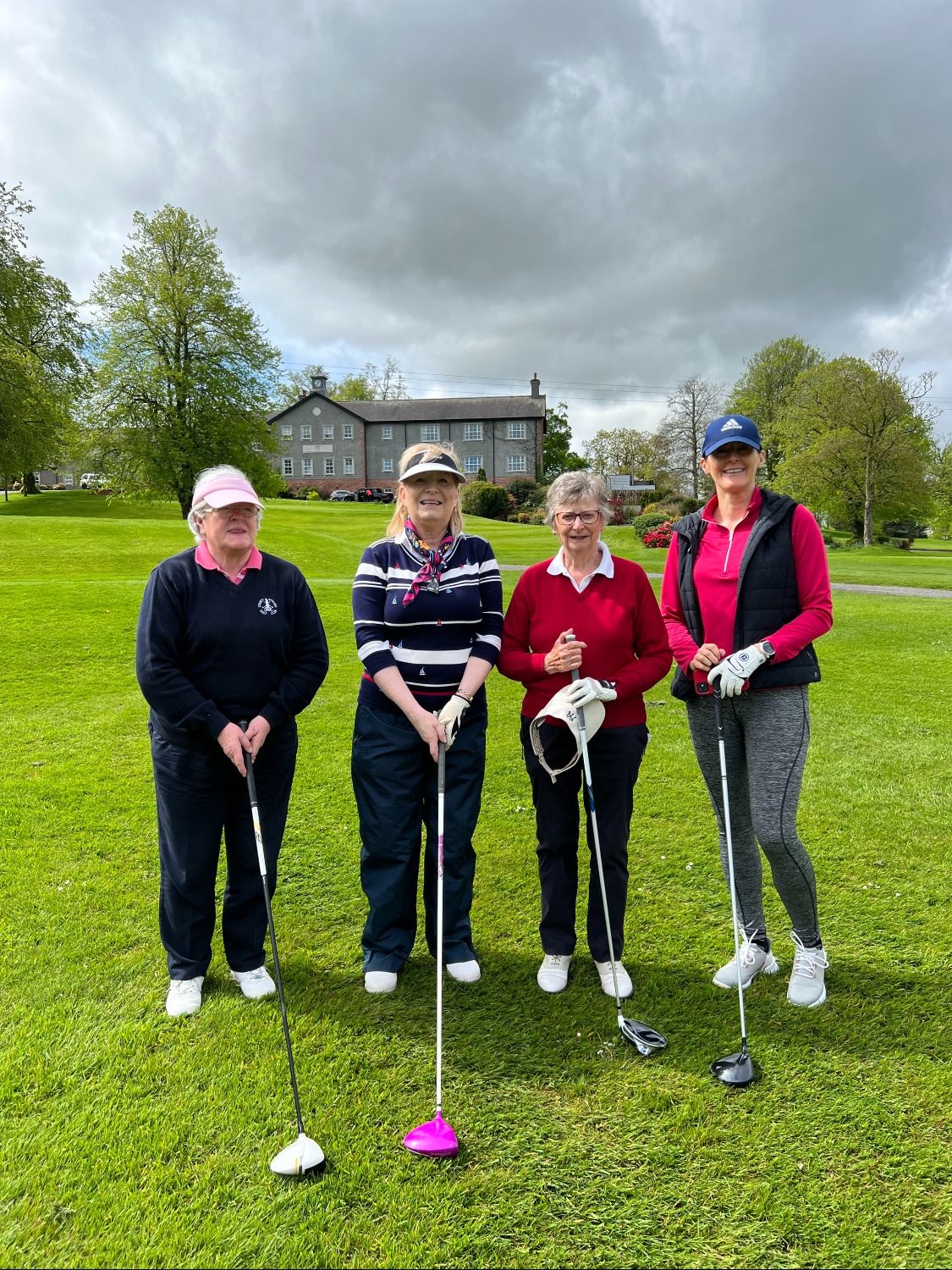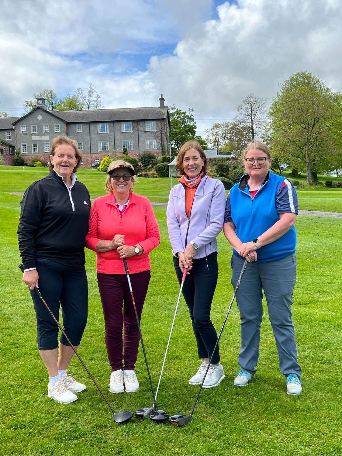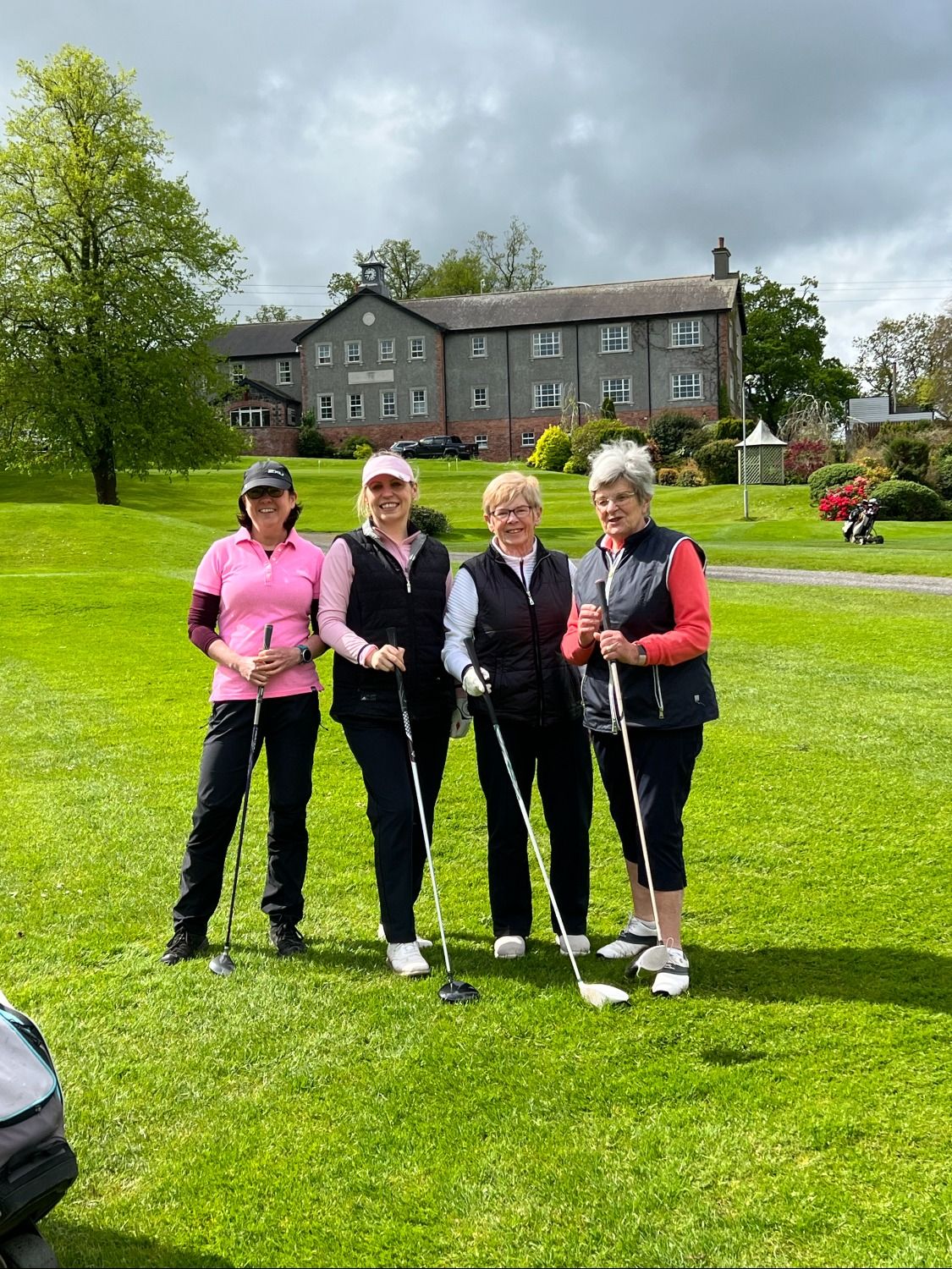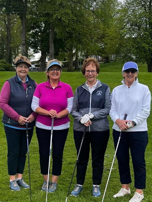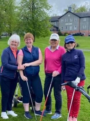 On Bank Holiday Monday 8 May 23, a large number of ladies set off by bus from Co Armagh Golf Club for Lady Captain Lily’s Away Day to Edenmore. With thunder and lightning forecast in the afternoon, you could have been forgiven for pulling out, however, as the day developed so too did the sun. The dark clouds disappeared leaving a beautiful blue sky and perfect golfing conditions, with layers being peeled off by many at the clubhouse before tackling the back 9.