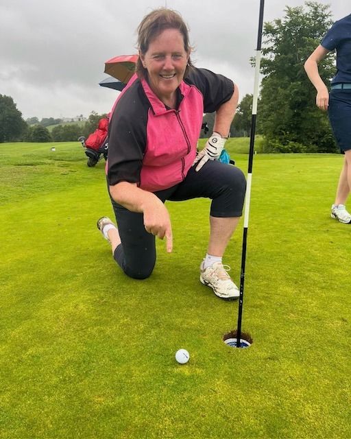 Maggie McKee was sixteen centimetres off a hole in won, winning the prize for Visitor’s Nearest the Pin at the 16th and successfully made the putt for a two. Mary Black and Bernie Rice also recorded twos.