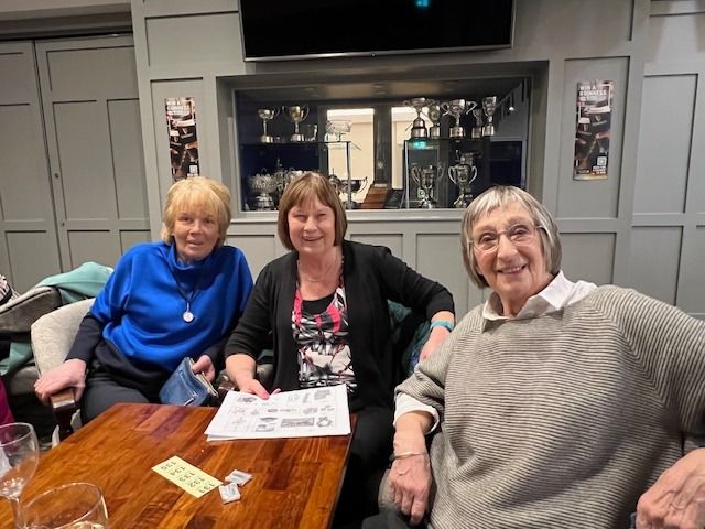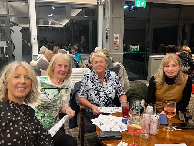 To keep the braincells active sheets with 30 dingbats were circulated amongst the tables and there was plenty of opportunity to mull over the answers before, during and following the delicious buffet supper provided by Parklands Restaurant which was washed down with a glass of wine courtesy of Lady Captain Ellen. Despite the protests about the difficulty of the task, there was a tie on 27 out of 30 for third place, necessitating a tiebreak question!