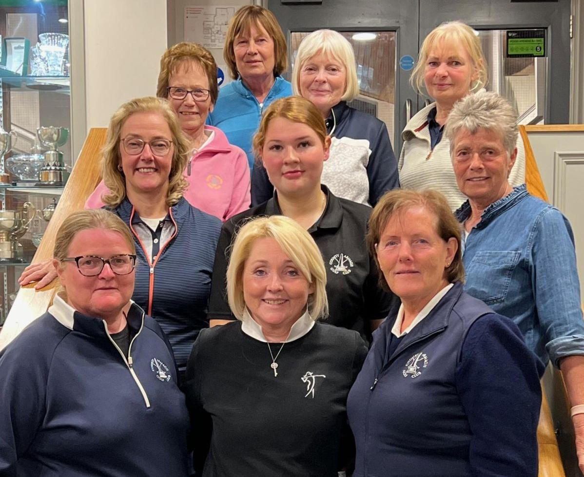 On Bank Holiday Monday 8 May 23, a large number of ladies set off by bus from Co Armagh Golf Club for Lady Captain Lily’s Away Day to Edenmore. With thunder and lightning forecast in the afternoon, you could have been forgiven for pulling out, however, as the day developed so too did the sun. The dark clouds disappeared leaving a beautiful blue sky and perfect golfing conditions, with layers being peeled off by many at the clubhouse before tackling the back 9.