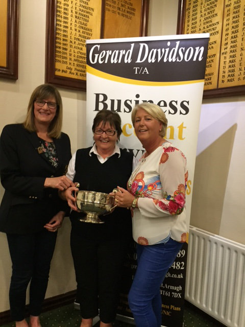 102 ladies, including over 30 visitors, competed for the prestigious Armaghdale Cup on Saturday 9 th September. The ladies challenge cup was originally presented to the club in 1926 by Lady Armaghdale. The competition was once again generously sponsored by G Davidson Business Accounts Services, represented on the night by Francis Davidson.