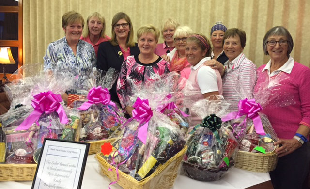 The club house was packed with ladies dressed in pink reflecting the worthy charity which this event supports. Mrs Phil Rice, on behalf of the sponsors organised the fabulous display of generous hampers which she presented to the grateful prize-winners. The overall winners were the experienced pairing of Valerie Gordon and Ellen Brady who returned a magnificent score of 49 points. Valerie thanked Phil for the beautifully presented generous hampers which Rice's always provide for the competition.