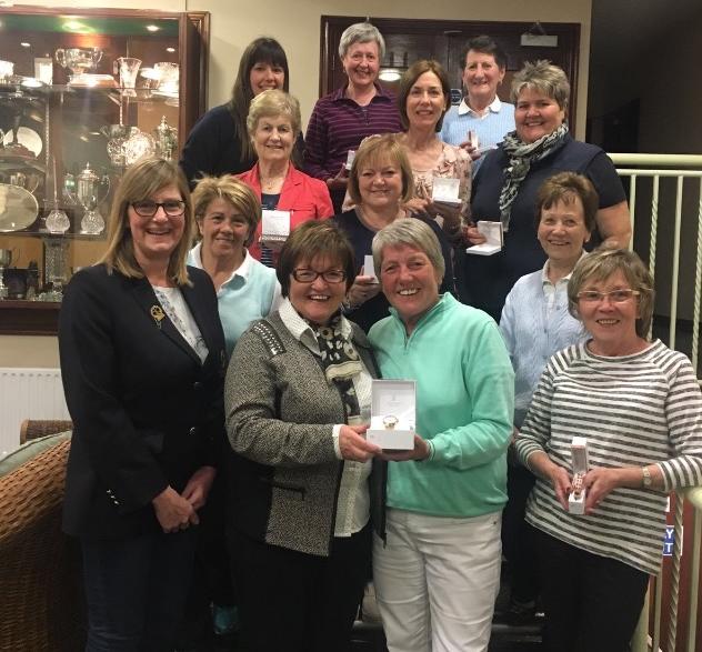 Ann Mone, on behalf of the sponsors organised the display of a wide array of stunning Rose Gold Tipperary Crystal jewellery which she presented to the grateful prize-winners at an evening function in a packed clubhouse.