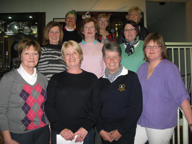 Front row L to R :Runner up :G Rafferty E Grimes Winner H Johnston Captain and P McCrory Gross winner
