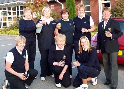 Team captain Stella McCrory and Lady Captain June Humphries celebrate the occasion with a glass of champagne.